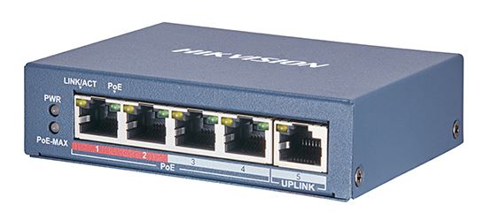 The DS-3E0105P-E2 is an unmanaged Ethernet PoE switch that requires no configuration and contains up to 4 100 Mbps ports. It is ideal for managing simple installations that have a large volume of video traffic from high-megapixel IP cameras. High priority ports guarantee stable transmission of key video feeds.