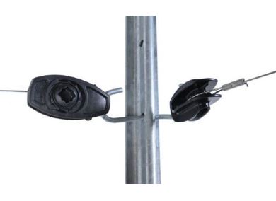 The heavy duty nylon tensioner is a tension system and an insulator all in one.